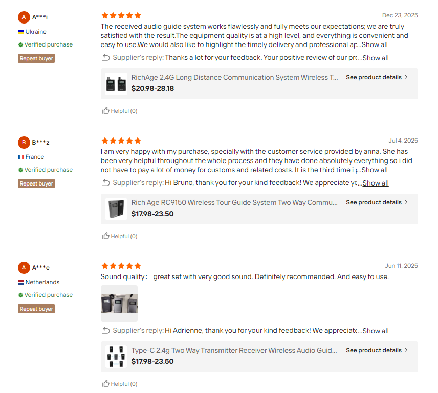 "The 200-meter range is a lifesaver. My group can wander freely through the galleries without clustering around me, and every single word comes through perfectly clear. The 12-hour battery on the transmitter easily covers my longest full-day tours."